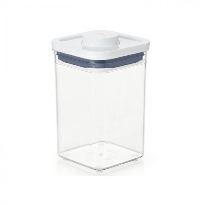 フタの真ん中についているボタンを押すだけで開閉ができ、ポップアップしたボタンはそのままハンドルとして使えるドライフード用の保存容器です。