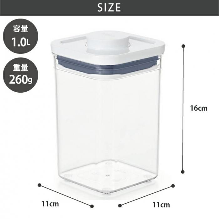 スクエア形状の容器は省スペースで収納できるだけでなく、掴みやすく、角から中身を注ぎやすいのも特徴です。毎日使うものだからこそ、使い勝手の良さを追求した保存容器です。