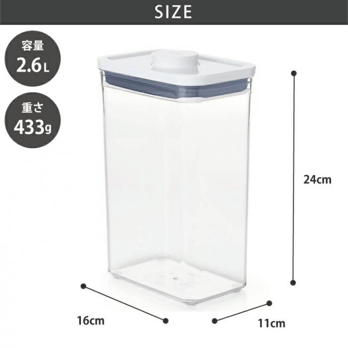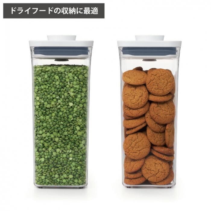 スクエア形状の容器は省スペースで収納できるだけでなく、掴みやすく、角から中身を注ぎやすいのも特徴です。毎日使うものだからこそ、使い勝手の良さを追求した保存容器です。