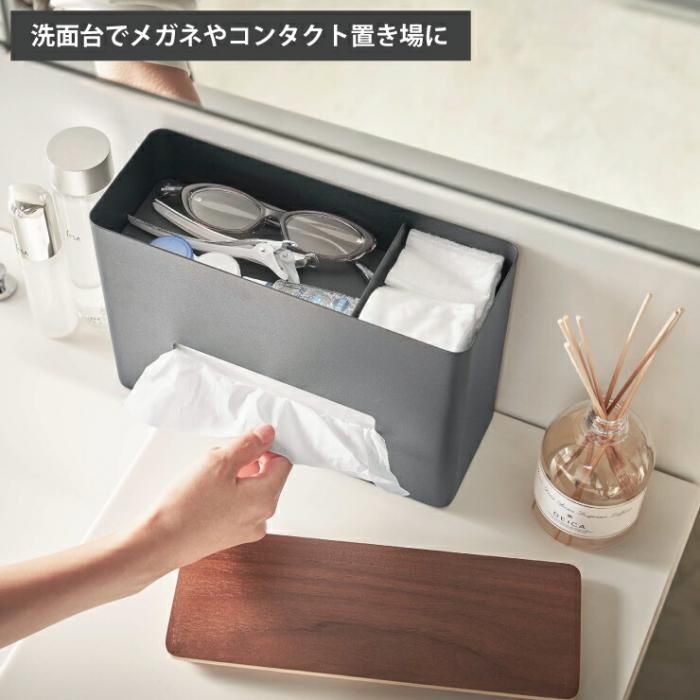 リン ティッシュ&ウェットシートケース 5698/5699 送料無料 当日出荷 分類で探す インテリアグッズ 収納 インテリア雑貨 ティッシュケース ブランドで探す 山崎実業 リン RIN 価格帯(税込) 4,000円台の商品 リビング用品 送料無料 ラッピング承ります ティッシュとウェットシートを同時収納でき 散らかりがちな小物類をまとめられる収納ケース スリムなので 置き場所も選ばず リビングやサニタリールームでもご使用いただけます rin-5698-9 4,950円(税込)0円 在庫入荷待ちブラウン4,950円(税込)在庫なし4,950円(税込)在庫なしナチュラル4,950円(税込)在庫なし4,950円(税込)在庫なし SOLD OUT 製品について性能詳細お買い物ガイドクロッカについてティッシュとウェットシートを同時に収納 小物もまとめて収納できるティッシュケース ティッシュとウェットシートを同時に収納でき、卓上で散らかりがちな小物類をまとめて収納できます。スリムなので、置き場所も選ばず、リビングやサニタリールームでもご使用いただけます。蓋は天然木の積層合板でインテリアにもなじむデザイン。上段にはウェットティッシュや小物が置けます。メガネやコンタクトレンズの一時置きにも。 材質容器,仕切りトレー:スチール(粉体塗装)、蓋:天然木積層合板(PU塗装) サイズ約W25.2×D9.2×H18.2cm 内寸サイズ容器:約W24.7×D8.8×H17.4cmティッシュボックス収納部:約W24.7×D8.3×H11.7cm仕切りトレー:(大)約W16.7×D8.6×H4.7cm、(小)約W7.8×D8.6×H4.7cmティッシュ取り出し口:約W14×H3cm 重量約1.2kg 対応サイズ一般的なサイズのティッシュ,キッチンペーパー、ティッシュボックス、ウェットティッシュ 生産国中国 備考上部の蓋は密閉ではありませんので、ウェットシートは袋から出さずに蓋を閉めた状態で収納してください。下記のものには対応しておりませんので、ご注意ください。〇W24.5×D8×H10cm以上のティッシュボックス、キッチンペーパー〇W16.5×D8.5×H4.5cm以上のウエットシート〇ロールタイプのウェットシート、ペーパータオル RERATED ITEMS関連商品タワー キッチンペーパーホルダー 6781/6782カレ キッチンペーパーホルダー 7316タワー マグネットキッチンペーパーホルダー 7127/7128トスカ マグネットキッチンペーパーホルダー 7824トスカ キッチンペーパーホルダー 7819