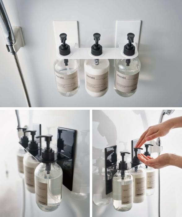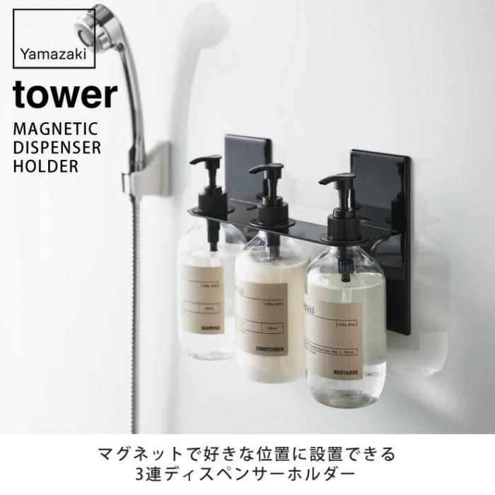 タワー マグネットディスペンサーホルダー 3連 5730/5731 送料無料 当日出荷 分類で探す インテリアグッズ 風呂・バス用品 ブランドで探す 山崎実業 タワー tower 価格帯(税込) 3,000円台の商品 風呂用品 送料無料 ラッピング承ります ディスペンサーをマグネットで好きな位置に設置できる3連ホルダー 宙に浮かせるからボトルの底がぬめらず衛生的 そのままポンプを押して液体を出すことができますtower-5730-1 3,300円(税込)0円 在庫入荷待ちホワイト3,300円(税込)在庫なし3,300円(税込)ブラック3,300円(税込)在庫なし3,300円(税込) 数量 カートに入れる 製品について性能詳細お買い物ガイドクロッカについてディスペンサーをマグネットで好きな位置に設置できる3連ホルダー 宙に浮かせるからボトルの底がぬめらず衛生的 ディスペンサーをマグネットで好きな位置に設置できる3連ホルダー。宙に浮かせるからボトルの底がぬめらず衛生的。そのままポンプを押して液体を出すことができます。 材質本体:スチール(ユニクロメッキ+粉体塗装)、マグネット、滑り止め:シリコーン サイズ約W25×D8×H17cm 内寸サイズホルダー穴:直径約3.2cm 重量約670g 耐荷重約4.5kg 取り付け可能な壁面マグネットが付く平らな面・スチール壁面 対応サイズディスペンサーのねじ込み部分:約2.4cm〜3.2cm以内容器のサイズ直径:約9cm、容量:約750ml以内を目安にしています。 付属品補助リング穴直径:約2.8cm×3補助リング穴直径:約2.4cm×3 生産国中国 ブランド 製造元tower -タワー 山崎実業