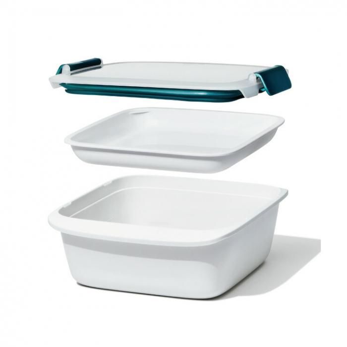 上段に具材を入れられるサラダやどんぶりランチに便利なコンテナ