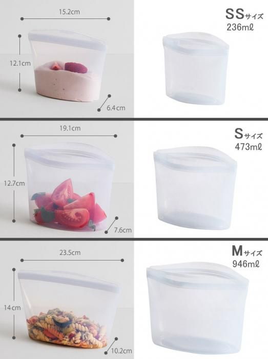 スタッシャー シリコーンバッグ ボウル3点セット SS 236ml S 473ml M 946ml ST2PKB01 送料無料 当日出荷 分類で探す キッチングッズ キッチン小物 保存容器 キャニスター ブランドで探す スタッシャー 価格帯(税込) 5,000円台の商品 キッチン用品 送料無料 ラッピング承ります スタッシャー ボウルコレクションは 底が平らなデザインで使いやすく お弁当箱やサービングボウルとしても 両端にはスープやドレッシングなどの液体を注ぐのに便利な注ぎ口付き stasher-st3pkb01 5,940円(税込) 0円 在庫入荷待ちSS、S、Mセット5,940円(税込)在庫なし5,940円(税込)在庫なし SOLD OUT 製品について性能詳細お買い物ガイドクロッカについて スタッシャーは、繰り返し洗って使える サスティナブルなシリコーン製保存容器 スタッシャーは、繰り返し洗って使えるシリコーン製保存容器。ボウルコレクションは、底が平らなデザインで使いやすく、お弁当箱やサービングボウルとしても大活躍。口が大きいのでものの出し入れや洗浄がよりしやすく、スープやドレッシングなどの液体を注ぐのに便利な注ぎ口が両端についています。 カットした野菜や果物の冷蔵保存、ソースやドレッシングの保存。お惣菜やシリアルの保存にも。ボウルでシリアルを調理して、そのまま器としても使用できます。幅広い温度に対応しているので、おかずを冷凍保存して、食べるときはそのまま電子レンジで加熱調理や湯せんでの温めもできます。 洗えば何回でもリユースできます。 多くの医療用器具や乳幼児用の製品に使用されているピュアプラチナシリコーン100%で出来ています。 耐熱温度は250℃、耐冷温度は-18度。加熱・冷凍OK!幅広い温度に対応しています。 電子レンジ、オーブン、湯せんでの調理、冷蔵、冷凍での保存、食洗機での洗浄が可能です。 ピンチロックシステムで密閉できるので、液漏れもしません。 低温調理にもお使いいただけます。 セット内容 ボウルSS × 1個縦12.1x横15.2xマチ6.4cm / 約236ml / 約80g ボウルS × 1個縦12.7x横19.1xマチ7.6cm / 約473ml / 約110g ボウルM × 1個縦14.0x横23.5xマチ10.2cm / 約946ml / 約160g 材質シリコーンゴム 耐熱/耐冷温度耐熱温度 250℃ / 耐冷温度 -18℃ 生産国中国 使用上の注意 直火やオーブントースター、魚焼きグリルではご使用になれません。また、火のそばに置かないでください。 オーブンや電子レンジで加熱する際は必ず容器の口を開けた状態でお使いください。 液状のものを保存する場合は8分目を目安にし、しっかり口を閉じてください。また、重ねたり逆さにしないでください。 容器周りの凸凹は成型時の仕様であり品質には問題ありません。 食品によってシリコーンが変色することがございますが、使用上は問題ありません。 ブランドstasher -スタッシャーRERATED ITEMS関連商品