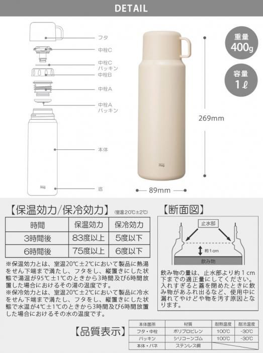 真空二重構造により優れた保温・保冷効果を発揮します。