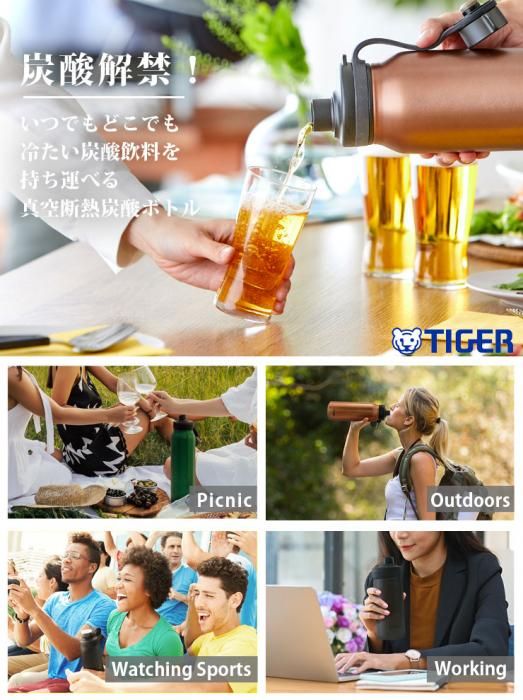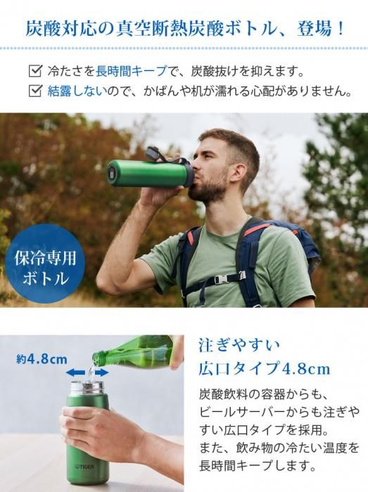 冷たいままの炭酸飲料が楽しめる 保冷専用の真空断熱炭酸ボトルです タイガー独自の炭酸対応せんにより キンキンに冷えた炭酸飲料やビールを安心して持ち運ぶことができます