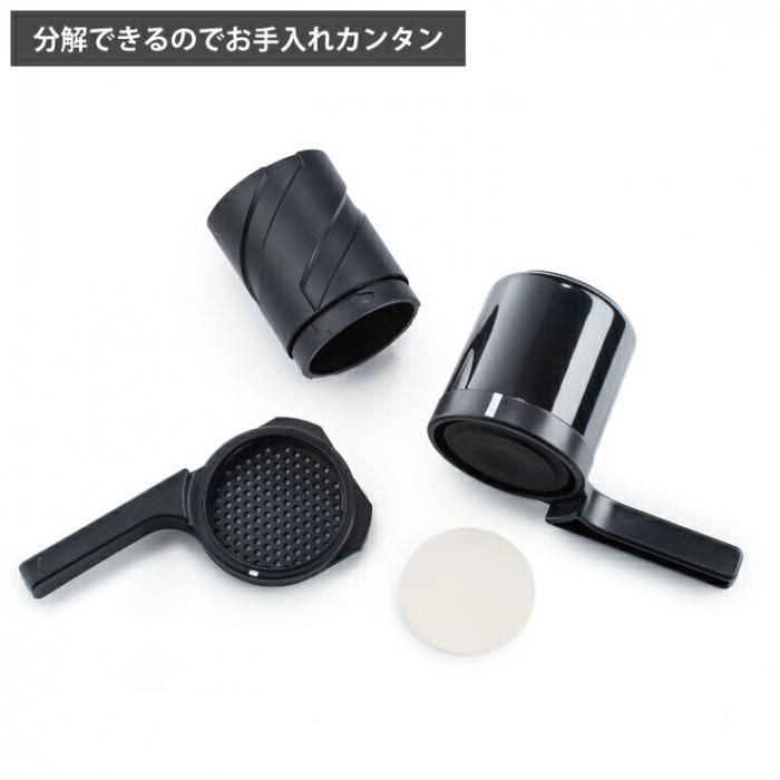 ろ過システムによりオイルの無いすっきりとした味わい。シンプルな構造でお手入れ簡単、食洗機も使用可能です。