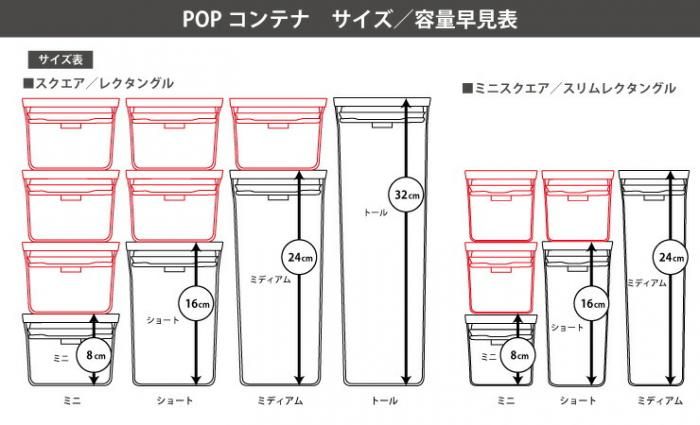 ポップコンテナは全部で18サイズありますので、入れるものの量や形にあわせてお選びいただけます。