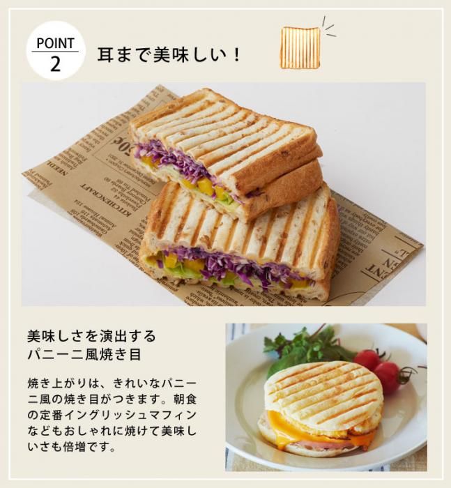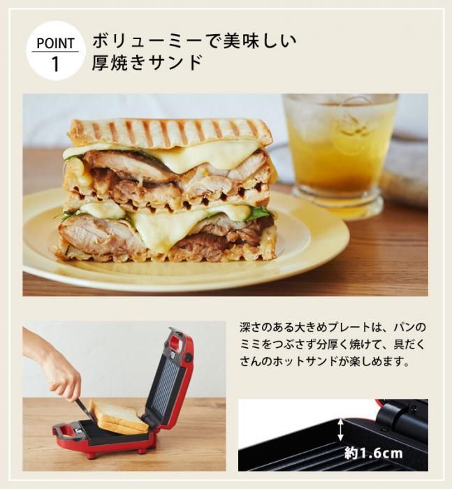 パンのミミをつぶさず分厚く焼けて、具だくさんでミミまで美味しいホットサンドが出来上がります。