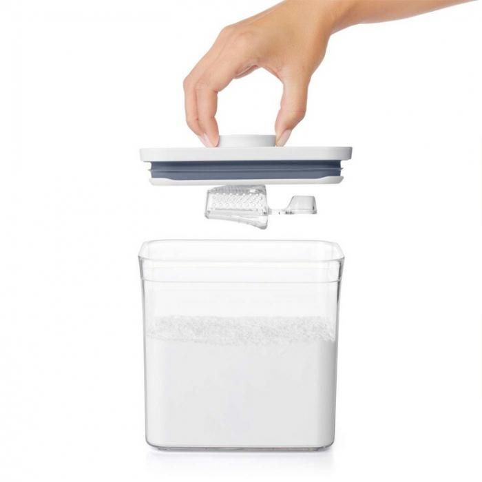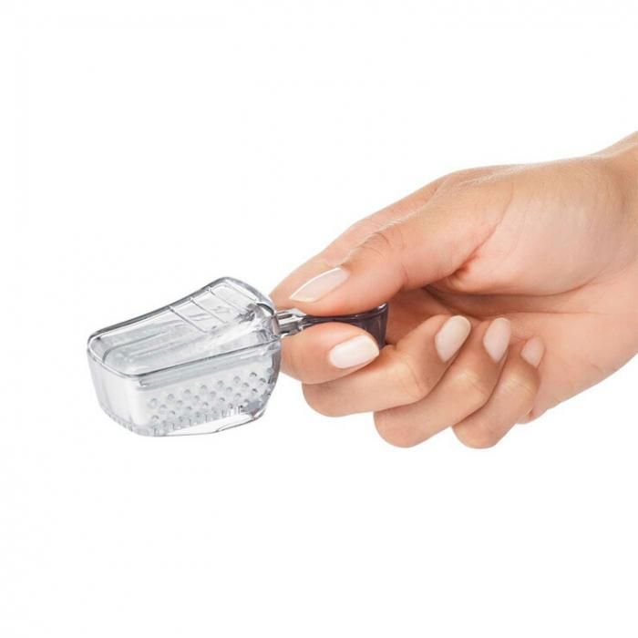 持ちやすいくぼみのついた持ち手部分と、ポップコンテナの隅にフィットしてすくいやすいスクープの形状でストレスなくお使いいただけます。