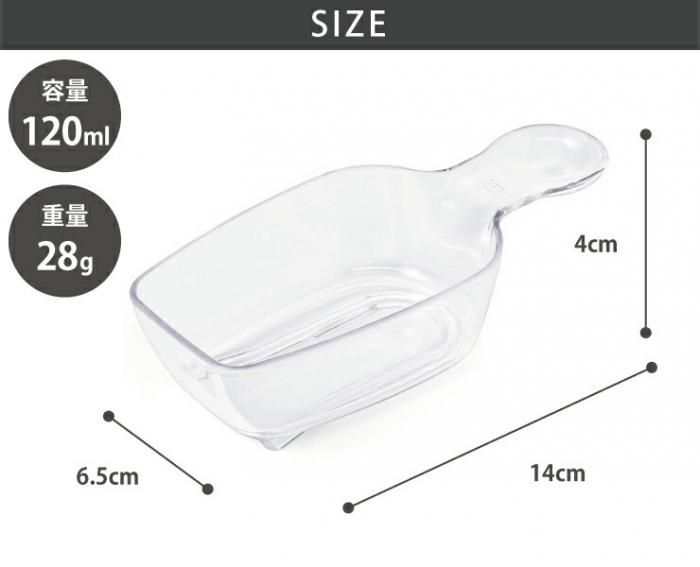 グラノーラやナッツ、粉類をすくうのに便利なスクープです。