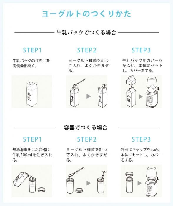 ※ヨーグルトの種菌は市販のプレーンヨーグルト(無糖・無添加)、またはヨーグルト菌(活性粉末乳酸菌)をご使用ください。