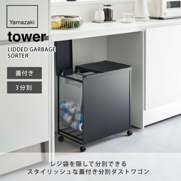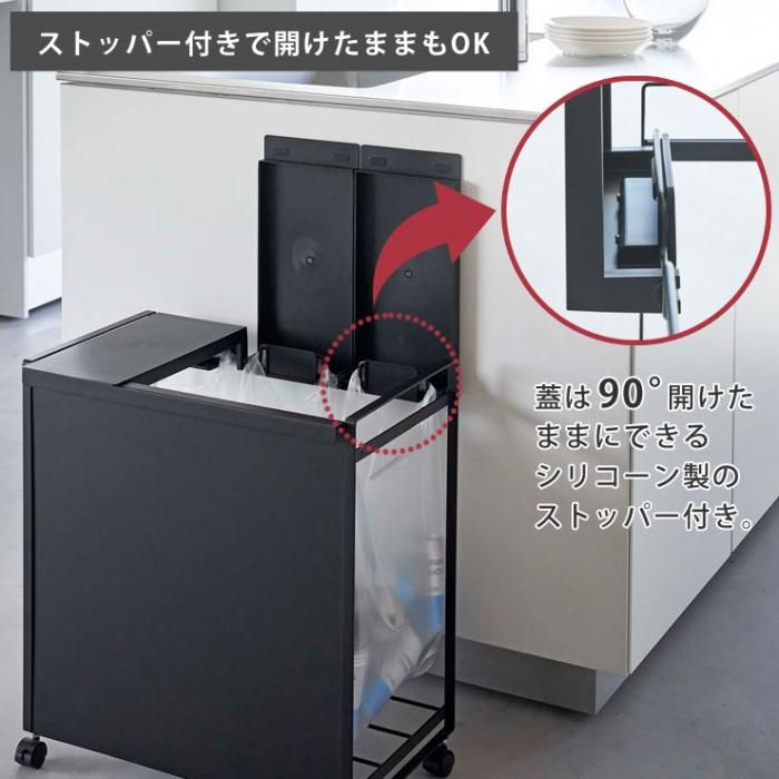 レジ袋を隠して分別できるスタイリッシュな蓋付き分別ダストワゴンです。