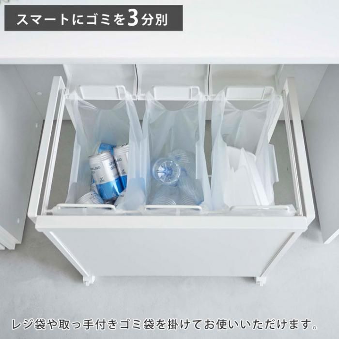 レジ袋を3つかけることができるので、瓶・缶・ペットボトル・プラスチックなどを分別できます。