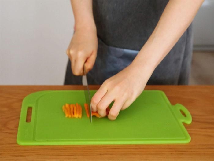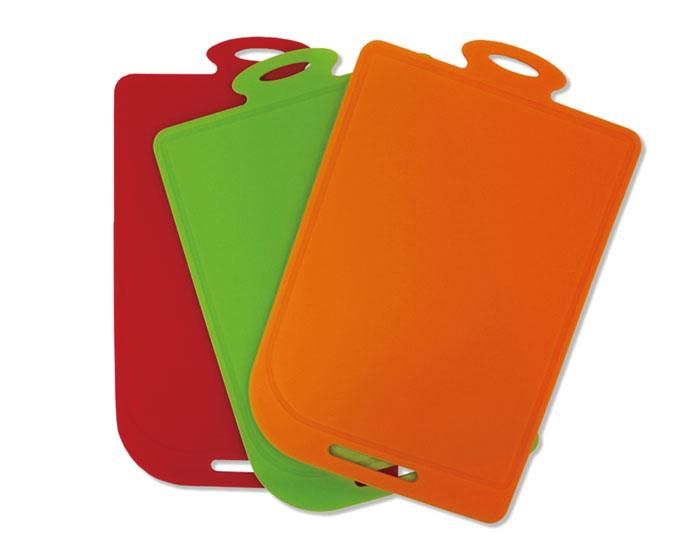 また、柔らかく簡単に丸められますが、曲げクセはつきません。包丁の当たりがソフトなので、食材を切る音も静かで刃こぼれもしにくい素材です。