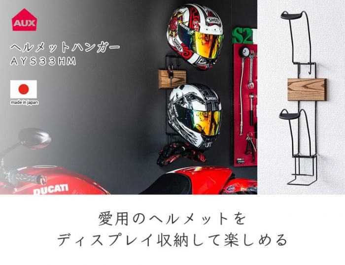 愛用のヘルメットを室内にディスプレイ収納して楽しめるヘルメットハンガー。