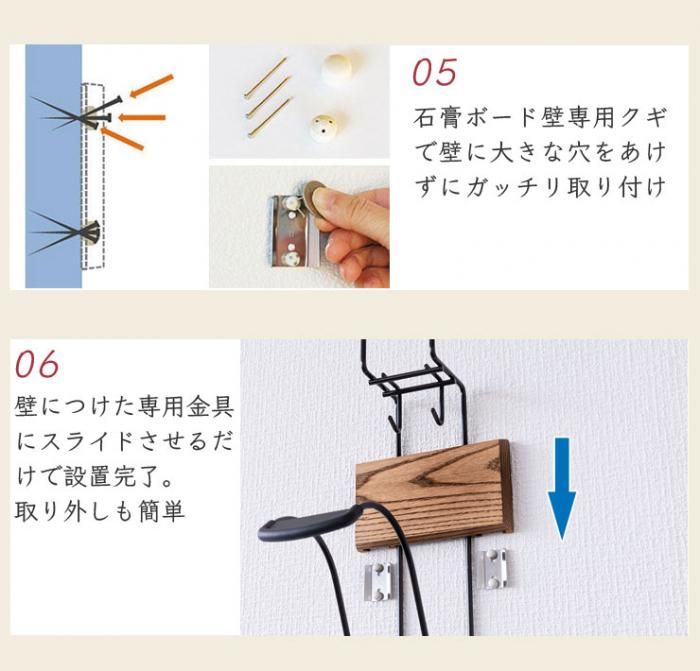 壁への取り付けは石こうボードピンで大きな穴をあけずにガッチリ取り付けできます。