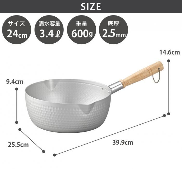日本製の確かな品質で、使い勝手のいいアルミ製雪平鍋です。