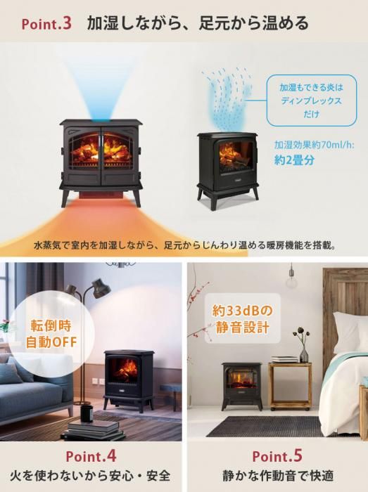 部屋に置くものは、静かな方がいい。ディンプレックスの電気暖炉の作動音は、約33dBの静音設計です。