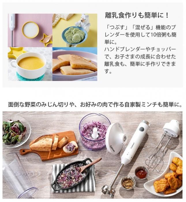 ハンドブレンダーやチョッパーで、お子さまの成長に合わせた離乳食も、幅広く簡単に手作りできます。