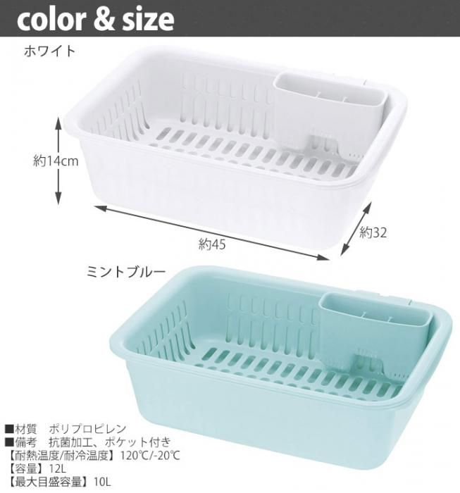 シェリー 水切りセット L 16914-8/16915-5 分類で探す キッチングッズ キッチン小物 シンクまわり 水切りカゴ・トレー ブランドで探す リッチェル Richell シェリー Cheri ブランドで探す 価格帯(税込) 1,000円台の商品 キッチン用品 送料無料 ラッピング承ります 進化するキッチンに合わせて使いやすさを実現 技ありアイテムでシンクまわりがグンと使いやすくなりますcheri-16914-8-16915-5 1,650円(税込) 水切りセット Lミントブルー1,650円(税込)在庫なしホワイト1,650円(税込)在庫なし SOLD OUT 製品について性能詳細お買い物ガイドクロッカについて進化するキッチンに合わせて使いやすさを実現!技ありアイテムでシンクまわりがグンと使いやすくなります。●お皿を立てかけやすいスリット形状。●底面は水切れしやすい形状。●つけ置きに便利な目盛り付き。商品説明進化するキッチンに合わせて使いやすさを実現!技ありアイテムでシンクまわりがグンと使いやすくなります。●お皿を立てかけやすいスリット形状。●底面は水切れしやすい形状。●つけ置きに便利な目盛り付き。 サイズ本体:W45×D32×H14cmポケット:W17.3×D7.2×H11.4cm 材質ポリプロピレン 備考抗菌加工ポケット付き【耐熱温度/耐冷温度】120℃/-20℃【容量】12L【最大目盛容量】10L サイズM L LLRERATED ITEMS関連商品