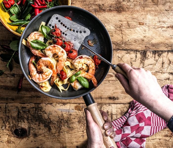 ダイヤモンドコーティングは熱伝導、蓄熱率に優れているため、食材が外はカリっと、中はジューシーに仕上がります。