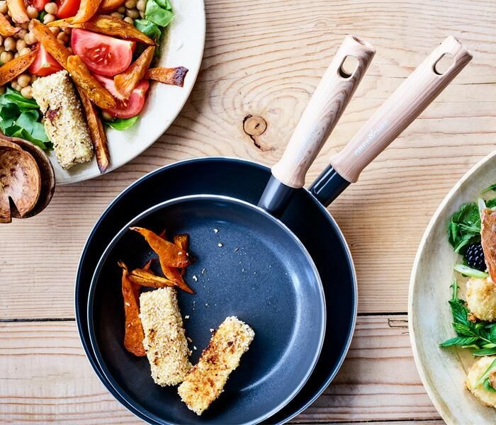 木目調ハンドルのグリーンシェフ ヴィンテージシリーズ 熱伝導 蓄熱率 耐久性に優れている ダイヤモンド・セラミックコーティングのフライパンです
