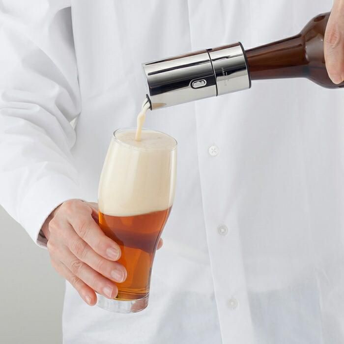 グリーンハウス 瓶ビール用ビアフォーマー GH-BEERH-SV 送料無料 当日出荷 分類で探す キッチングッズ 食器・カトラリー ワイン・バー・酒用品 その他ワイン・バー・酒用品 ブランドで探す グリーンハウス 価格帯(税込) 3,000円台の商品 キッチン用品 送料無料 ラッピング承ります 「グリーンハウス」瓶ビール用ビアフォーマー 超音波が生み出すクリーミーな泡 国内ほぼ全ての瓶に対応 持ち運び用のポーチが付属greenhouse-beerh-sv 2,780円(税込)0円 SOLD OUT 製品について性能詳細お買い物ガイドクロッカについて 瓶ビールがもっとうまくなる! 瓶ビール用ビアフォーマー 1秒間に4万回のパワー。 超音波が生み出すきめ細かいクリーミーな泡 美味しく飲む秘訣! ビール7:泡3の割合いが黄金比 瓶口に付けるだけ ボタンを押しながら注ぐとクリーミーできめ細かな泡 国内のほぼ全ての瓶ビールに対応 高級感のあるステンレスボディ 持ち運びに便利な専用ポーチを付属 注ぎ口部を取り外して丸洗い可能 食洗機対応 どんなグラスでもOK グラス・ジョッキを選びません 電源単4形アルカリ乾電池/単4形ニッケル水素充電池×2本(別売り) 電池持続時間約150回 サイズW424×D424×H945mm 重量約110g 材質耐熱ABS、ステンレス、TPE、シリコン 耐熱温度上部ユニット:60℃下部ユニット:100℃ 耐冷温度-21℃ 付属品専用ポーチ、取り扱い説明書、保証書 特長1秒間に4万回のパワー。超音波が生み出すきめ細かいクリーミーな泡瓶口に付けるだけ、ボタンを押しながら注ぐとクリーミーできめ細かな泡国内のほぼ全ての瓶ビールに対応高級感のあるステンレスボディ持ち運びに便利な専用ポーチを付属注ぎ口部を取り外して丸洗い可能、食洗機対応単4形乾電池×2本使用、単4形ニッケル水素充電池にも対応どんなグラスでもOK グラス・ジョッキを選びません 備考メーカー保証6ヶ月単4形アルカリ乾電池/単4形ニッケル水素充電池×2本(別売り)電池持続時間:約150回 RERATED ITEMS関連商品ジアレッティ 自動ペットボトルオープナー 電池式 アピデ giaretti GR-85Kジアレッティ ラクラク 自動缶オープナー 電池式 アピデ giarettiグリーンハウス ハンディビールサーバー GH-BEERN