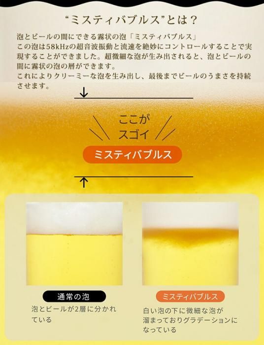 グラスに汚れや油分が付着しているとミスティバブルスができにくいことがあるので、清潔なグラスをお使いください。