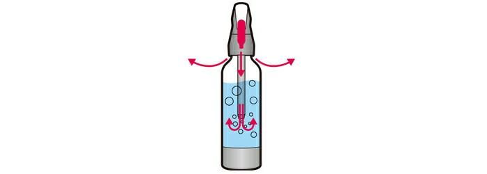 構造上、ボトルとノズルの間から圧力が逃げる仕組みになっているので、圧力の逃げ道にジュースなどの添加物が詰まる危険はありません。