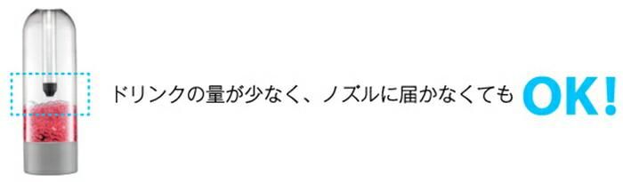 ドリンクの量が少なく、炭酸ガスが噴出するノズルにドリンクが届かなくても、そのままスパークリングできます。