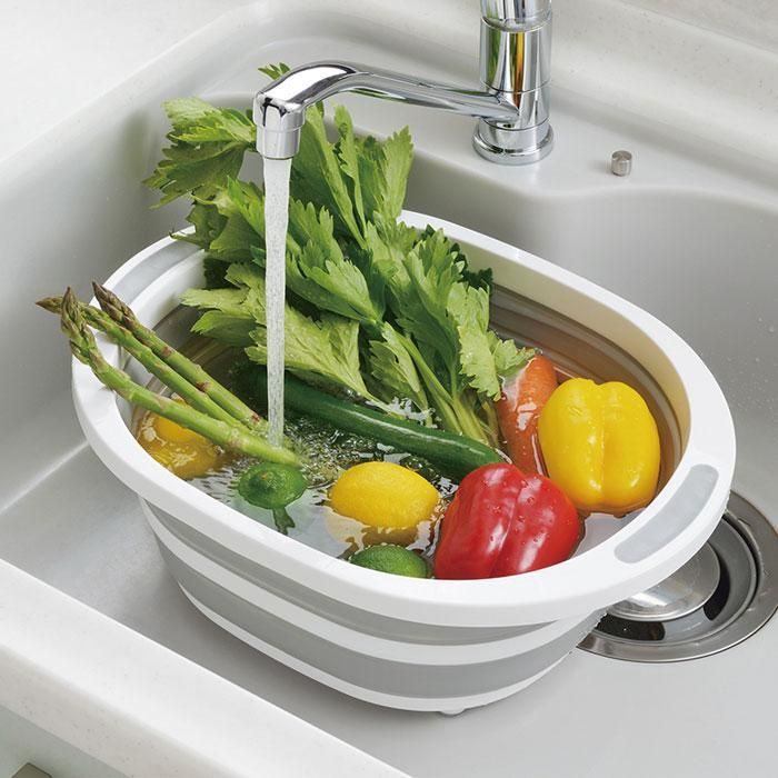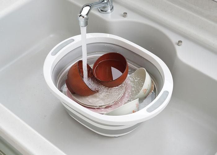 タマハシ デイズ 折り畳み 洗い桶 DS-09 分類で探す キッチングッズ キッチン小物 シンクまわり 洗い桶 ブランドで探す タマハシ 価格帯(税込) 1,000円台の商品 キッチン用品 送料無料 ラッピング承ります 収納時に場所を取らない折り畳みタイプの洗い桶 食器洗いや洗濯物のつけ置き洗いなどに便利ですeporas-281099 1,188円(税込) 数量 カートに入れる 製品について性能詳細お買い物ガイドクロッカについて収納時に場所を取らない折り畳みタイプの洗い桶 水回りをスッキリきれいに収納。収納時に場所を取らない折り畳みタイプの洗い桶。食器洗いや洗濯物のつけ置き洗いなどに便利です。排水弁を押して溜めた水をラクに流せます。 ●蛇腹式で使わない時は幅を取らずにコンパクトに収納できます。●深さがあり、皿やコップ浸け置きができます。●底部足には滑り止め付で安定感があります。●水も汲めて、物も運びやすいためアウトドアでも活躍します。●本体底部は平らなのでカッティングボード代わりにもなります サイズ本体:(約)400×317×152mm折り畳み時高さ:(約)35mm 満水容量(約)8L 重量(約)525g 材質ポリプロピレン(耐熱温度120℃、耐冷温度-20℃)熱可塑性エラストマー(耐熱温度80℃、耐冷温度-20℃) 備考中国生産 製造元タマハシRERATED ITEMS関連商品