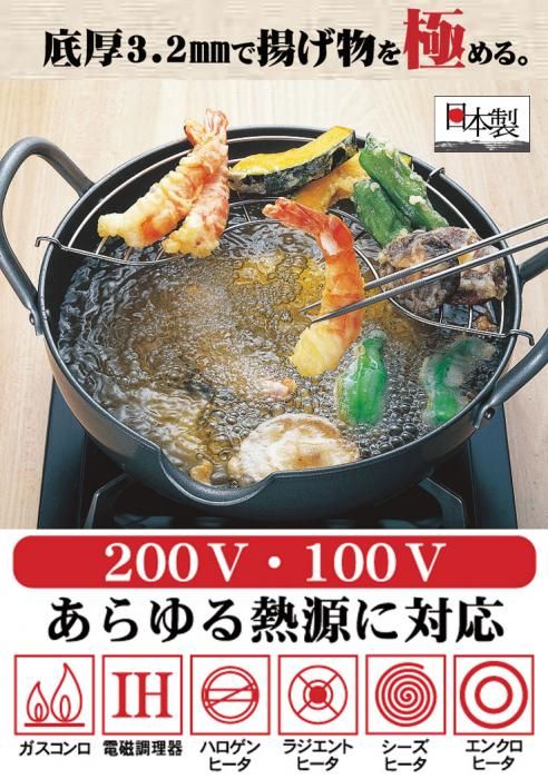 極天 極厚揚げ鍋 26cm GT-26W タマハシ 送料無料 分類で探す キッチングッズ 鍋 天ぷら鍋 ブランドで探す タマハシ 価格帯(税込) 4,000円台の商品 キッチン用品 送料無料 ラッピング承ります お鍋の厚さが油温を一定に保つ理想的な天ぷら鍋 熱伝導率が高く熱を均一に伝え 揚げ物を上手においしく仕上げますtamahashi-gt26w メーカー希望小売価格6,050円(税込) 4,059円(税込)0円 在庫26cm4,059円(税込) 数量 カートに入れる 製品について性能詳細お買い物ガイドクロッカについて●極天 極厚揚げ鍋 26cm GT-26W お鍋の厚さが油温を一定に保つ理想的な天ぷら鍋 お鍋の厚さが油温を一定に保つ理想的な天ぷら鍋。油温が下がりにくく、ほぼ一定の温度に保ちます。熱伝導率が高く熱を均一に伝え、揚げ物を上手においしく仕上げます。揚げ物の基礎知識から本格的な14品目を載せたレシピブック付。 サイズ本体(約)313×280×130mm本深(約)80mm 満水容量(約)3.4L 適正容量(約)1.3L 重量(約)2675g 材質本体:鉄(シリコン焼付け塗装)底の厚さ3.2mm取っ手:鉄(シリコン焼付け塗装)アミ:鉄(クロムメッキ) 備考日本製 サイズ22cm 24cm 26cm 28cm製造元タマハシRERATED ITEMS関連商品富士ホーロー 天ぷら鍋 24cm TP-24富士ホーロー よくばり天ぷら鍋富士ホーロー 天ぷら鍋・オイルポット・網付きホーロー容器 調理器具3点セット富士ホーロー 片手天ぷら鍋 16cm C-16STP極ジャパン 天ぷら鍋 S 20cm 揚げ網付き極ジャパン 天ぷら鍋 M 24cm 菜箸・揚げ網付き