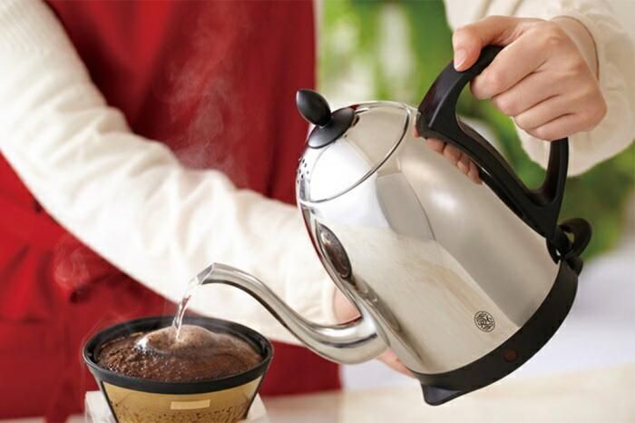 カップ1杯分なら約60秒で沸騰、コーヒーをドリップしたい時にも便利な電気ケトル