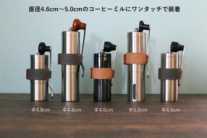 直径約4.6〜5.0cmの筒状コーヒーミルに対応しています。