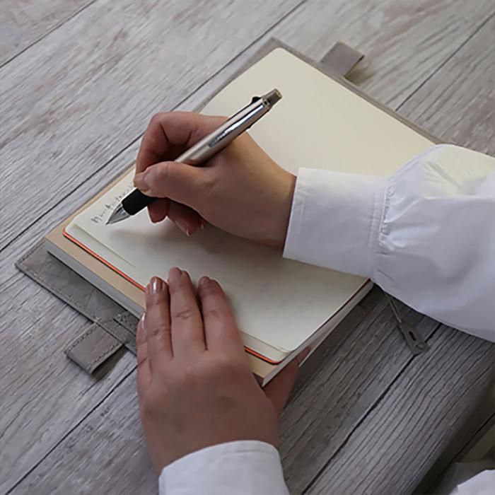 2ヶ所にあるペンホルダーは上下にペンを通すことで表紙がロックされる仕組みです。