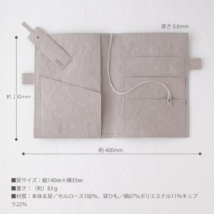 本体にはWashable Paper(洗える紙)を使用。革のような見た目ですが、紙ならではの軽さと、汚れたら洗える耐水性が特徴です。