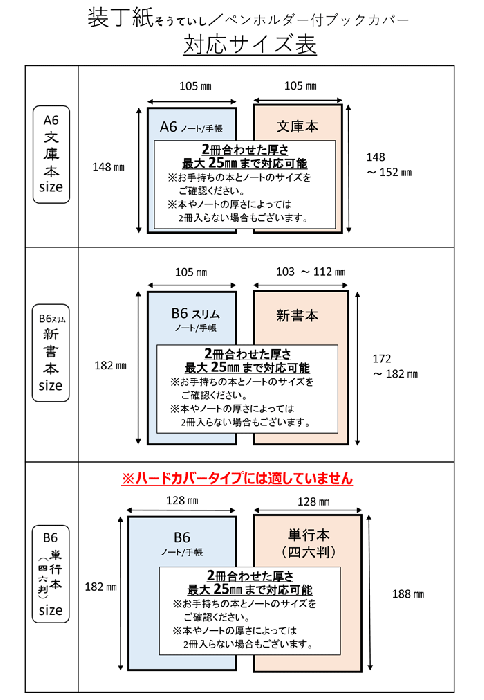装丁紙のサイズは、文庫本,新書本,単行本,教科書本の全部で4種類です。