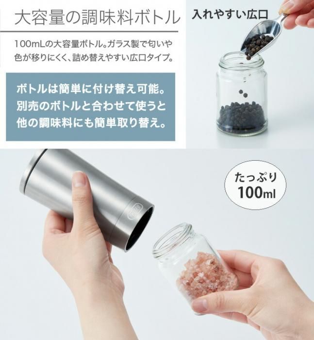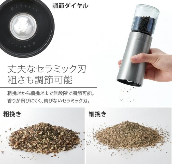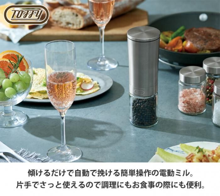 傾けるだけで自動で挽ける簡単操作の電動ミル。