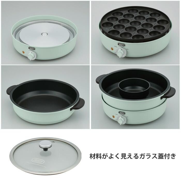「煮る」「炊く」「焼く」「蒸す」と便利に使える鍋に加えて、チーズフォンデュや火鍋などの2色鍋が楽しめる“内鍋”と、人気の“たこ焼きプレート”が付属します。