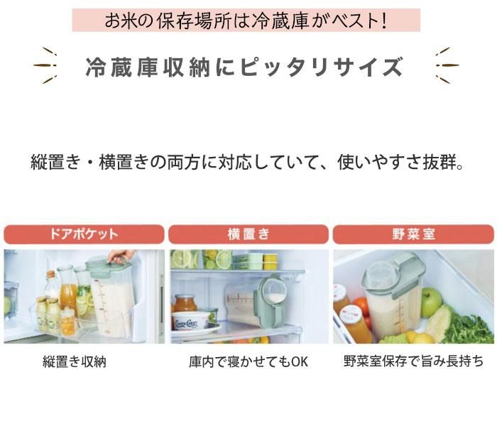 冷蔵庫用のコンパクトなお米の保存容器です。冷蔵庫収納にぴったりのサイズです。