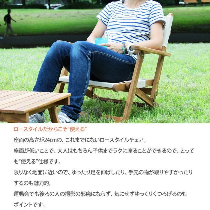 座面の高さが24cmの、これまでにないロースタイルチェア。座面が低いことで、大人はもちろん子供までラクに座ることができます。