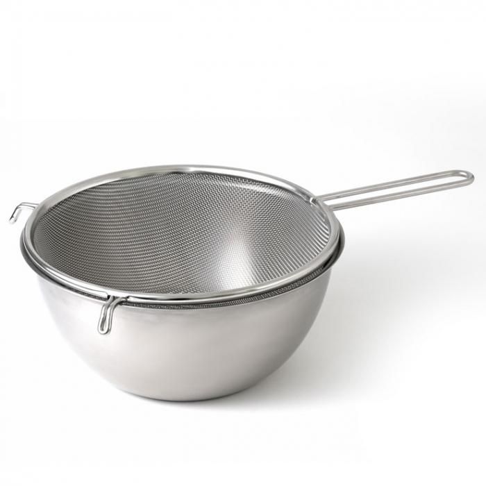 熱い麺や茹で野菜の湯切りや、お出汁をひく際に、鰹節や昆布をあらかじめザルに入れて、鍋に入れてそのままタイミングよく引き上げるなど、鍋やボウルを使っての調理に便利です。