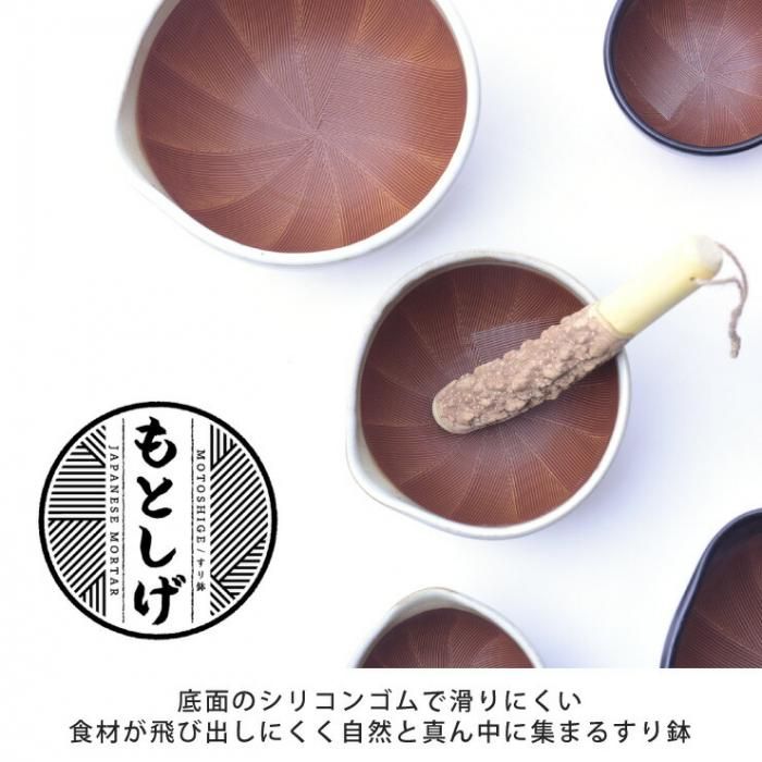 「もとしげ すり鉢」は使いやすさを追求してたどり着いた、卓上にも置けるすり鉢です。