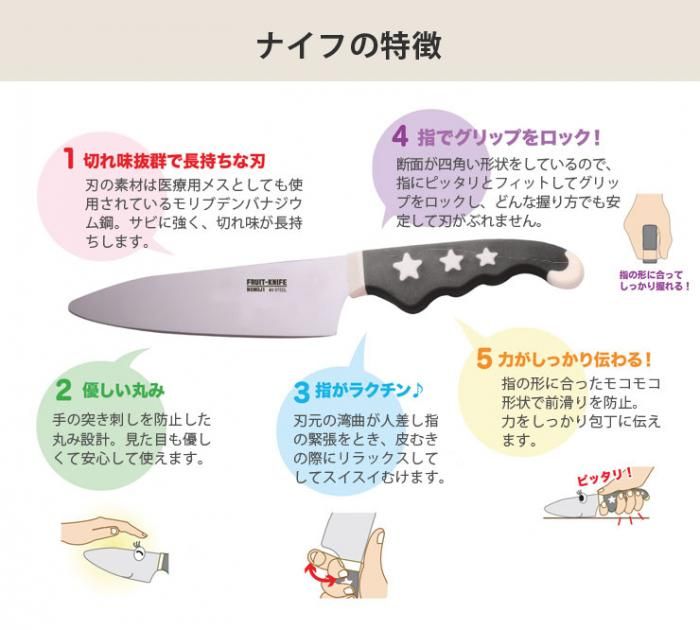 本格的な大人の調理道具ですが、見た目を優しいものにした為、キッチン以外でのご使用やお子様の刃物トレーニングにも安心して使えます。