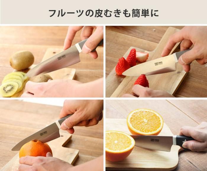 キッチンでの使用はもちろん、食後やおやつなどの際に果物の皮をその場でむいて、フレッシュな味わいを楽しめるナイフです。