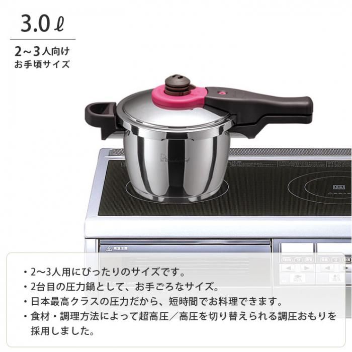 超高圧と高圧を調理に合わせて切替えられる調圧おもりを採用した片手圧力鍋