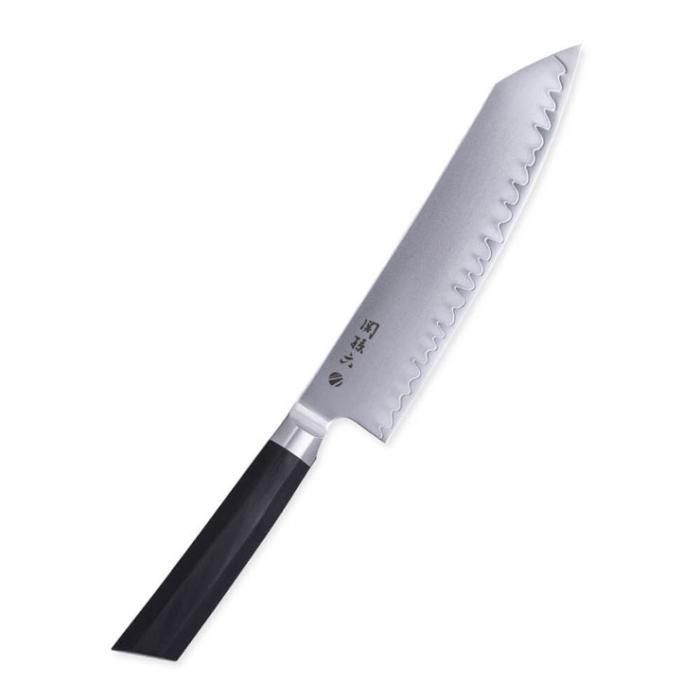 日本刀の形状の対象物に効率的に力が加わるという機能性に着想を得て、食材を切る作業に応用した、機能美を兼ね備えた形状です。