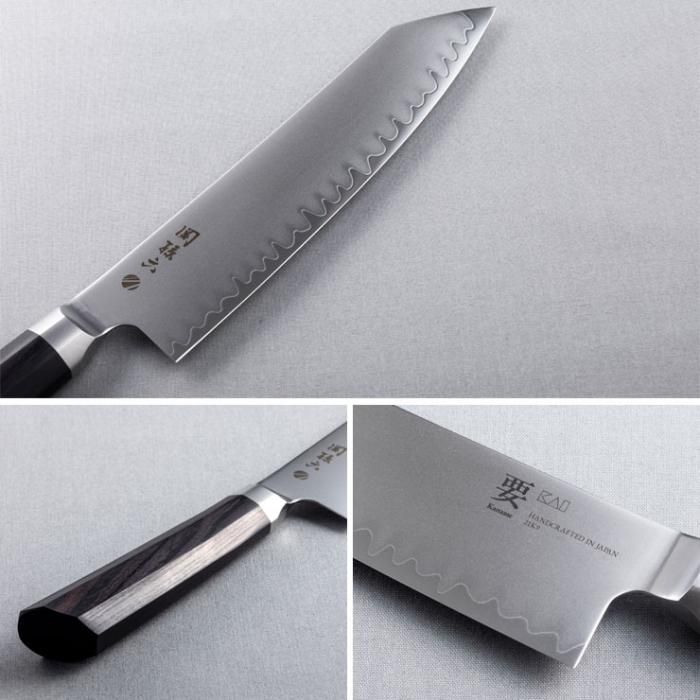 高硬度のステンレス刃物鋼の新鋼材、「VG XEOS」を芯材とした三層鋼に従来より刃先を薄く仕上げるスキ加工を施すことで、切り込む際の抵抗が少なくなり、さらに洗練された鋭い切れ味を長く体感していただけます。
