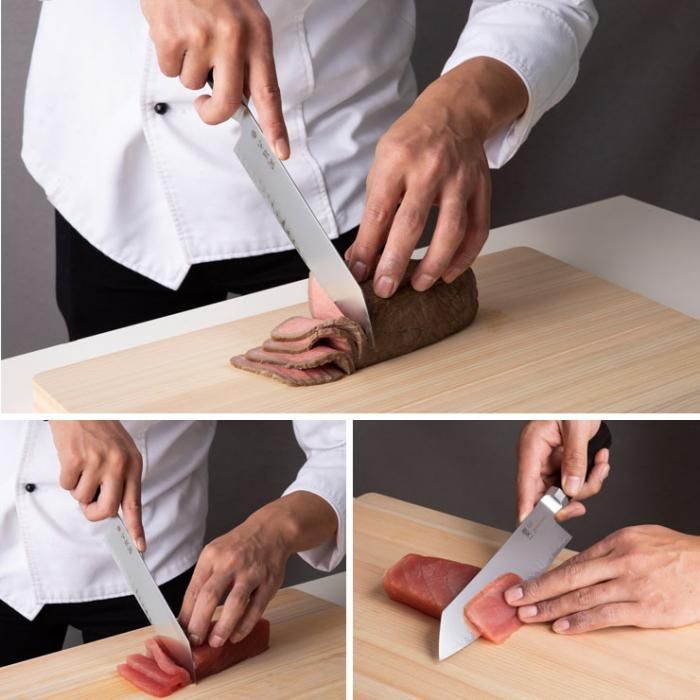剣型の刃先は、肉の筋切や人参の飾り切り等、細かい作業がしやすく、刃体全体を使っていただける機能性を兼ね備えた形状です。