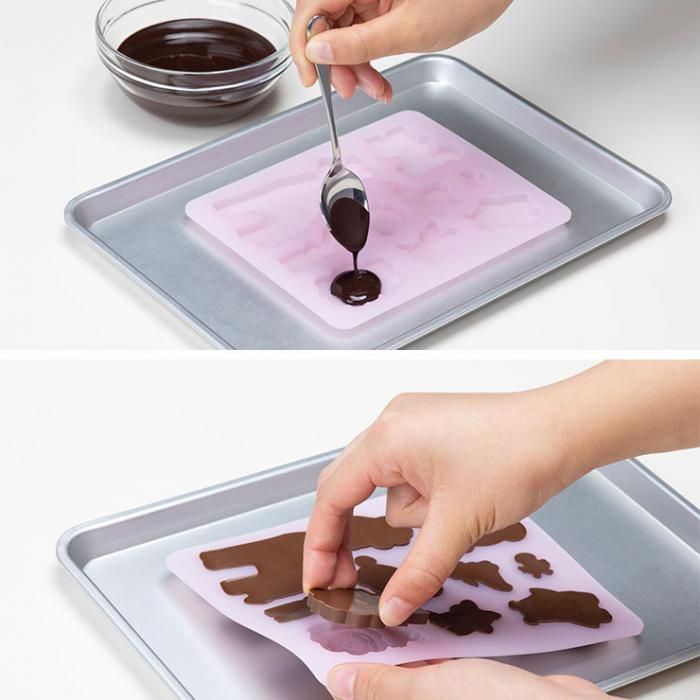 シリコーン製なのでできあがったチョコを取り出しやすく、氷やグミ作りにも使用できます。